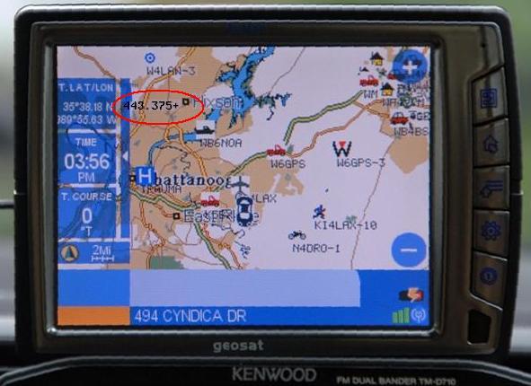 OVERVIEW: The Automatic Packet Reporting System was designed to support rapid, reliable exchange of information for local, tactical real-time information, events or nets. The concept, which dates back to the mid 1980's, is that all relevant information is transmitted immediately to everyone in the net and every station captures that information for consistent and standard display to all participants. Information was refreshed redundantly but at a decaying rate so that old information was updated less frequently than new info. Since the primary objective is consistent exchange of information between everyone, APRS established standard formats not only for the transmission of POSITION, STATUS, MESSAGES, and QUERIES, it also establishes guidelines for display so that users of different systems will still see the same consistent information displayed in a consistent manner (independent of the particular display or maping system in use). See the original APRS.TXT. The two images below should give you an idea of the kinds of information available to the mobile operator on his APRS radio. On the left is the Kenwood D710 radio showing the station list, and on the right is the attached GPS with map display showing the location of other APRS stations.
