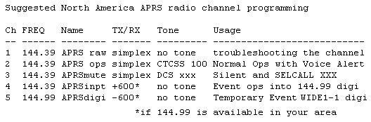 UBIQUITOUS OPERATIONS: APRS must work everywhere to be a true resource to the mobile ham radio operator. In North America, 144.39 MHz is dedicated throughout the continent. In Europe, use 144.80 and in Australia use 145.175 MHz.. National operating rules were standardized in the 2004 time frame under the New-N Paradigm to eliminate obsolete and inefficient routing. Now, only a 2 hop WIDE2-2 path is recommended in all areasthough mobiles can use the special WIDE1-1,WIDE2-1 two-hop path that takes advantage of nearby WIDE1-1 fill-in digipeaters. See the high density areas in the map to the right. Further, the APRS channel is a resource to inform everyone of nearby ham resources in range. Please see the Local Info Initiative.
