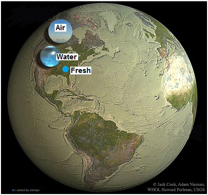 AFM Climate Change Minute and Greater Annapolis Group: In 2014 AFM approved a climate change minute that describes human responsibility for the increasing risks being created by global warming and advocates the weaning of our economy from its reliance on fossil fuels. The graphic at right shows to-scale how little air and water we have on earth. We must be concerned. To help extend our concern about the impacts of climate change, and to organize for private and public actions to reduce the burning of fossil fuels, AFM has facilitated the formation of the Climate Stewards of Greater Annapolis -- a group that welcomes everyone in our local area who is concerned about global warming. For more information, contact Phil Favero at pgfavero@gmail.com.