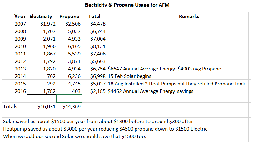 fossil fuel consumption was the $4500 average a year for propane heating.