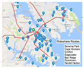 try to participate as a friendly, outgoing, and fun event. The name "Friendly Wheels" came up in comparison to our group's "Friendly Eights" where every year we encourage members to share dinners together once a month and get to know each other better. Riding together in the same car is even more intimate! Carl Benson prepared this map showing the distribution of all members and then we developed larger scale maps to make it easier to find each other. Who knows,