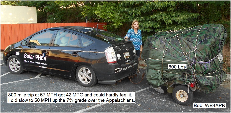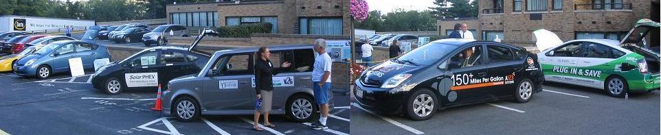 The other three Prius had 5 KWH or so(?) of added Lithium PHEV batteries costing several thousand dollars? . In contrast, my 2 KWH Lead-Acid batteries only cost about $500, and mine was charging the whole time parked in the sun, while they spent the first hour trying to find a place to plug in. Well, actually, the other Prius just plugged into 115 convenience outlets, but the E-BOX to my right was all electric and they had to find a 240 volt 50 amp outlet to plug in. They drove 100+ miles from Deleware on all-electric and the box was thirsty.