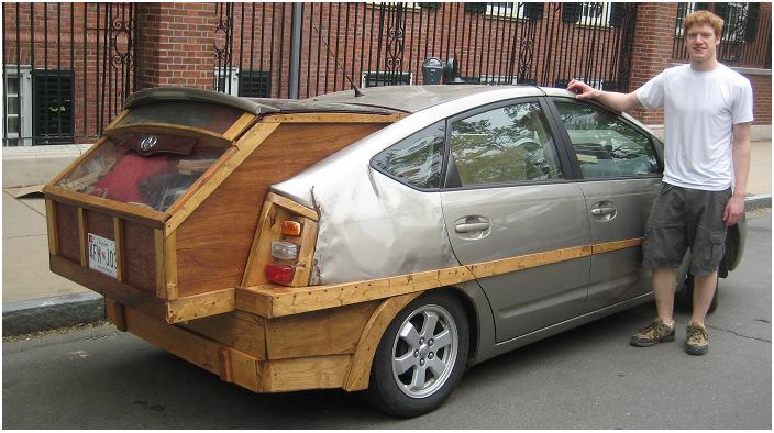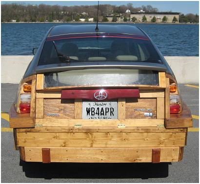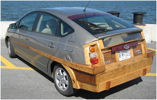 WOODIE PRIUS #2: . My second salvage Prius is rebuilt with a wooden rear-end. As of March 2010 the car has passed state inspection and is on the road. Below are the BEFORE photos.