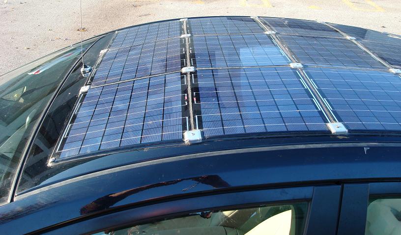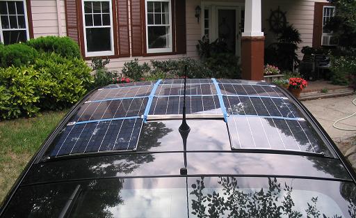 UPDATE 2016: This original SOlar Prius is still my every day car but I tell people that messing with solar panels on the car are about 0.1% cost effective since they cost ten times what home solar costs and you have 100 times more area on your home roof than the car. But, today someone sent me this link to much lower cost flexible panels. They are down to $250 for a 180W panel that should fit the roof of many cars. Im just putting this link here to be able to find it in the future if I build any more solar cars.
