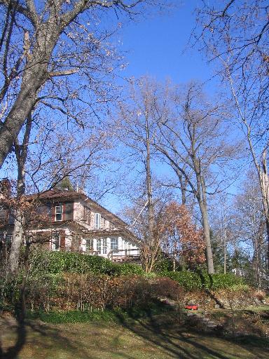 400W wind generator at the top of the tree to the right. Last year I finished installing