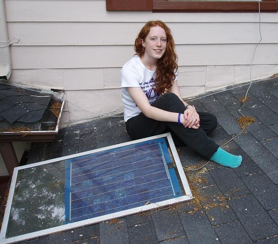 daughter's 2004 high school environmental project using a solar panel and a car battery