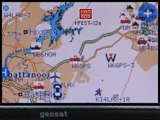 HAMFESTS: Another very important local APRS object is displayed for local HAMFESTS. These objects use the object Name of HFEST-ddx where dd is the day of the month, and "x" is unique to the local area. The "x" would not show on the 8 byte callsign field of the DSTAR radio, but the important HFEST and date would. See the GPS map display below which alerted me to a Hamfest coming up on the 12th. The APRS network can display all HAMFEST objects in the country by going to FINDU.COM for the callsign/object name of HFEST*