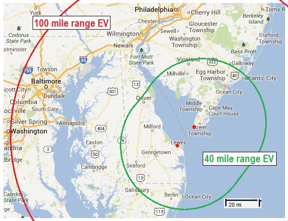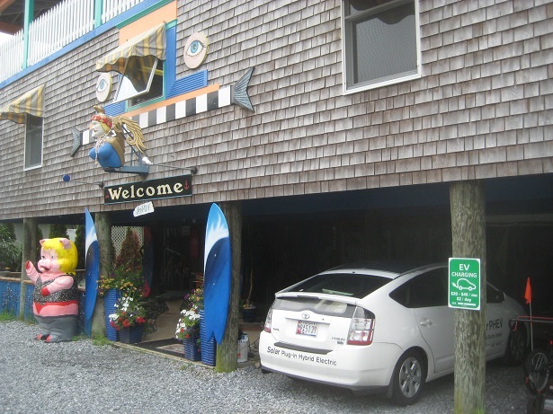 Delaware Potential: Our first outlet success was at the Blue Waterhouse B&B just a block from the beach in Lewes Delaware as shown here. A second success was with Hampton Inn on the Rehoboth strip, though their corporate made them remove the sign, even though they still offer charging to guests. Another great opportunity would be if the Cape May Ferry placed an L2 charger on their boats? Then the 40 mile range of a Volt, for example, would be extended by almost 24 miles during the 80 minute trip, extending the range from Atlantic City, NJ down through most of Delaware on a single charge.