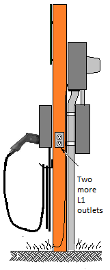 as shown below left. We can add a Charging post with an L1 cord and two additional 120v outlets as shown below right.