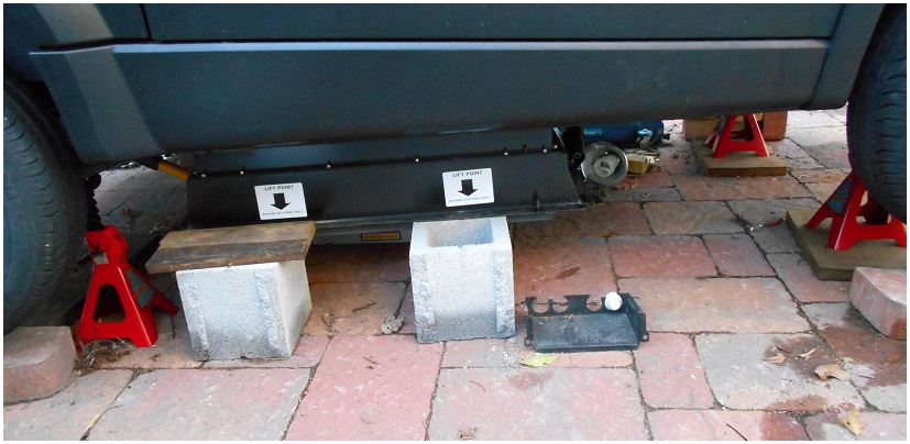 Once the battery is on the ground, then I had to begin jacking up the front end of the car so I