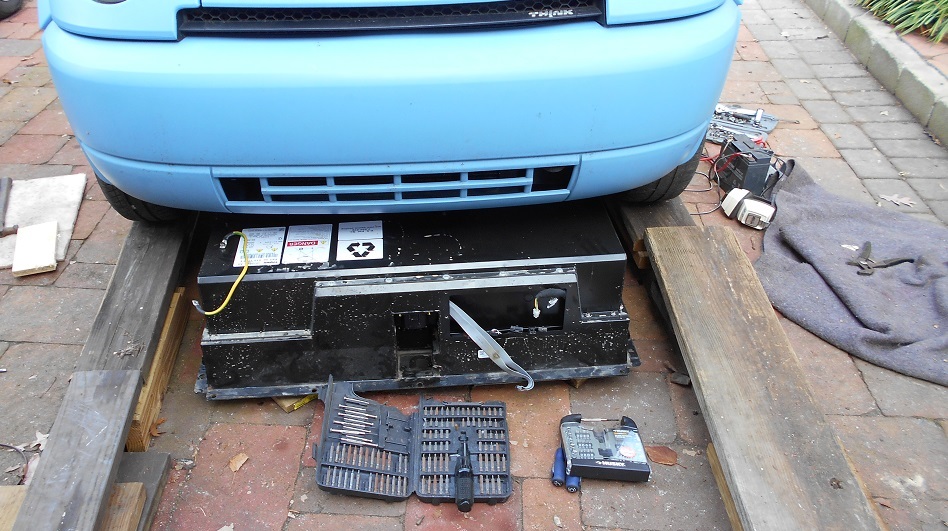 the tube was supporting 100% of the battery weight. Then I removed the final four bolts.