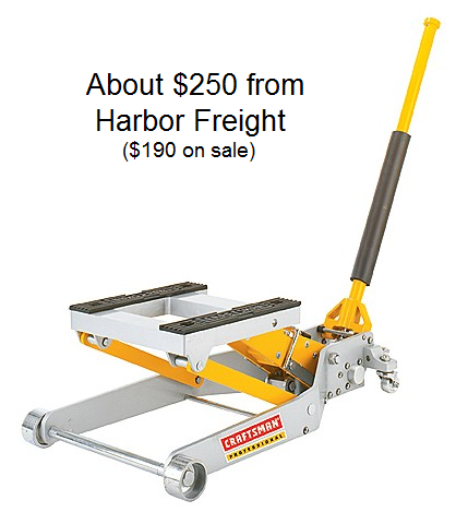 battery. I used the 1500 lb motorcycle jack from Harbor Freight shown here for the
