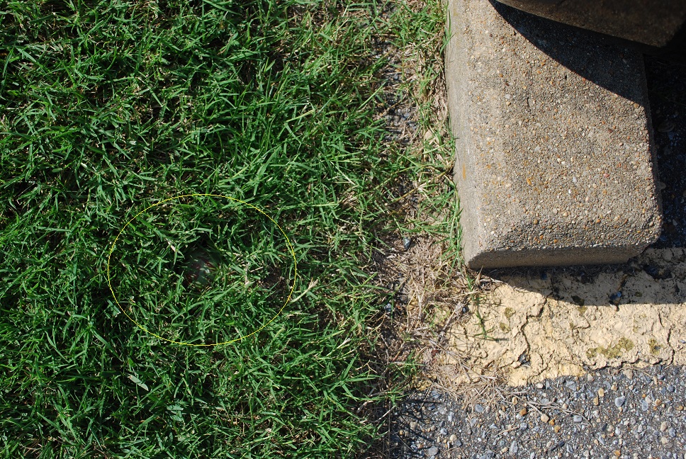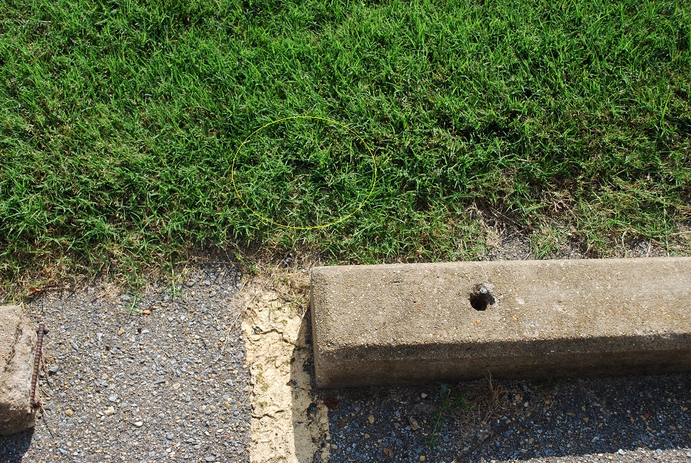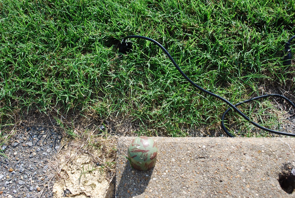 5. The clincher is the camo paint job on the PVC pipe cap that protects it from the weather. It probably took only about 20 minutes to install (after a very rainy day when the soil was saturated and I could split the soil about 5 inches deep with a hand trowel and just push in the cord. The cord is just a 50 foot outdoor rated green 12 gauge extension cord and only the end is inside about a 6" piece of PVC pipe with the pipe cap on top to keep the receptical dry. Some short screws through the sides of the PVC pipe hold the rubber moulded receptical end in place.