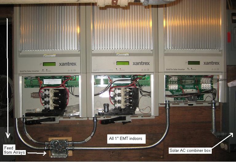 Distribution Wiring: The next photo shows how the inverters are connected to the