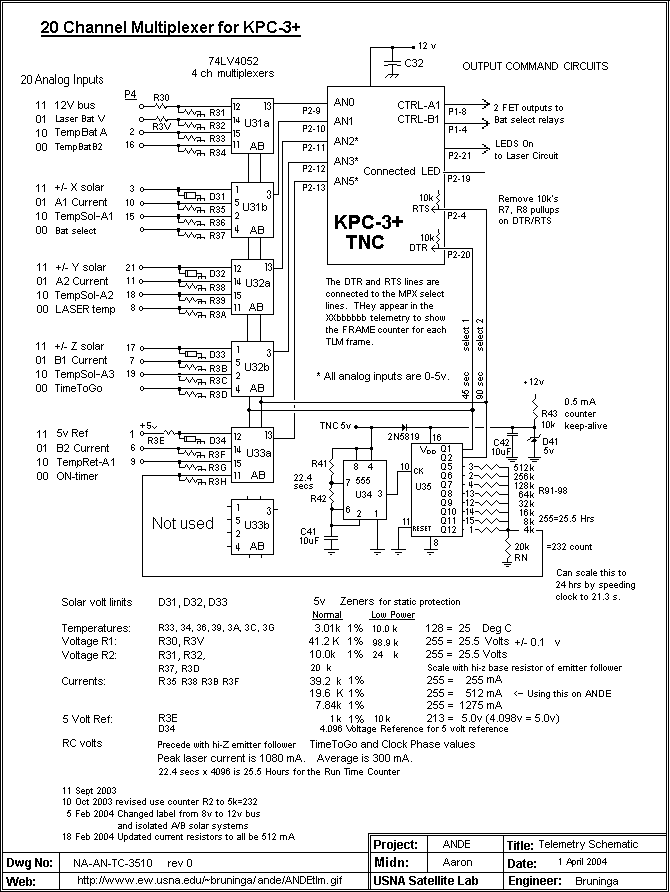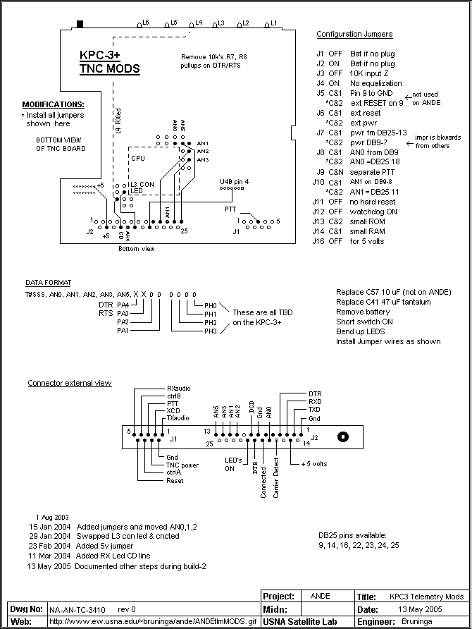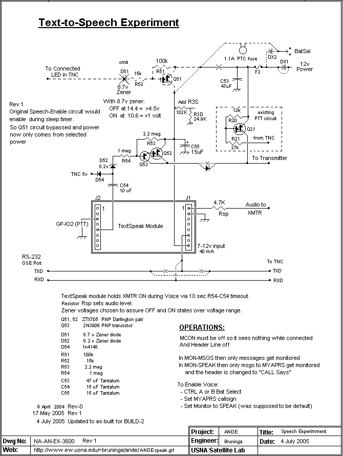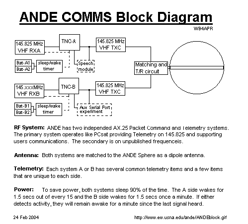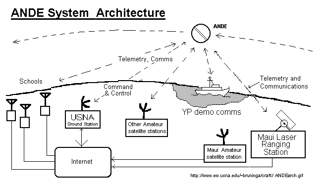 The Space segment of the ANDE communications mission has been demonstrated a number of times in space via PCsat, MIR School tests, the Shuttle SAREX, and the SPRE mission. . It is also a spin off of a previous launch opportunity that we had in 1998 called NATSweb that almost got launched on SEA-LAUNCH.. The ANDE Communications mission is a project to produce a viable payload in a very short time frame using off the shelf components where possible. Here are the background topics of design: