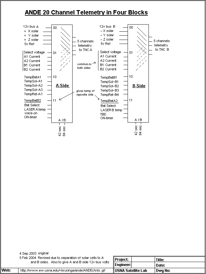 STATUS: The Flight unit is at KSC awaiting launch on STS-116 planned for the first week of Dec 2006. It was delivered to the Cape the week of 11 July for integration starting on the 17th. The USNA comm systems for ANDE were complete and integrated in the spacecraft and tested as of 15 August 2005.