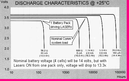 MULTI-PACK BATTTERY DESIGN: Since the lithium discharge profile is totally flat to 97% of battery life, the only energy usage data will be obtained by using each of the 4 battery packs to exhaustion. This will give 4 energy benchmarks during the mission. The battery packs are all in parallel, but 1, 2 and 3 series droping diodes (0.7v) are placed in series with each additional pack beyond the first. This way, the first pack is used to ehaustion before significant current begins drawing from the next, and so on.
