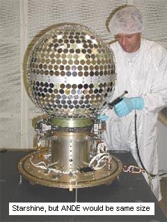 The photo below is NOT ANDE, but it does give a representative view of a 19" spherical Spacecraft.