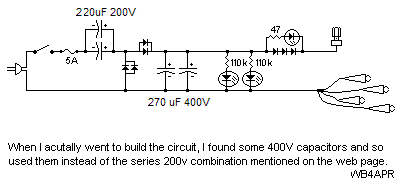 with three 200v capacitors (two in series) as shown. These high voltage diodes