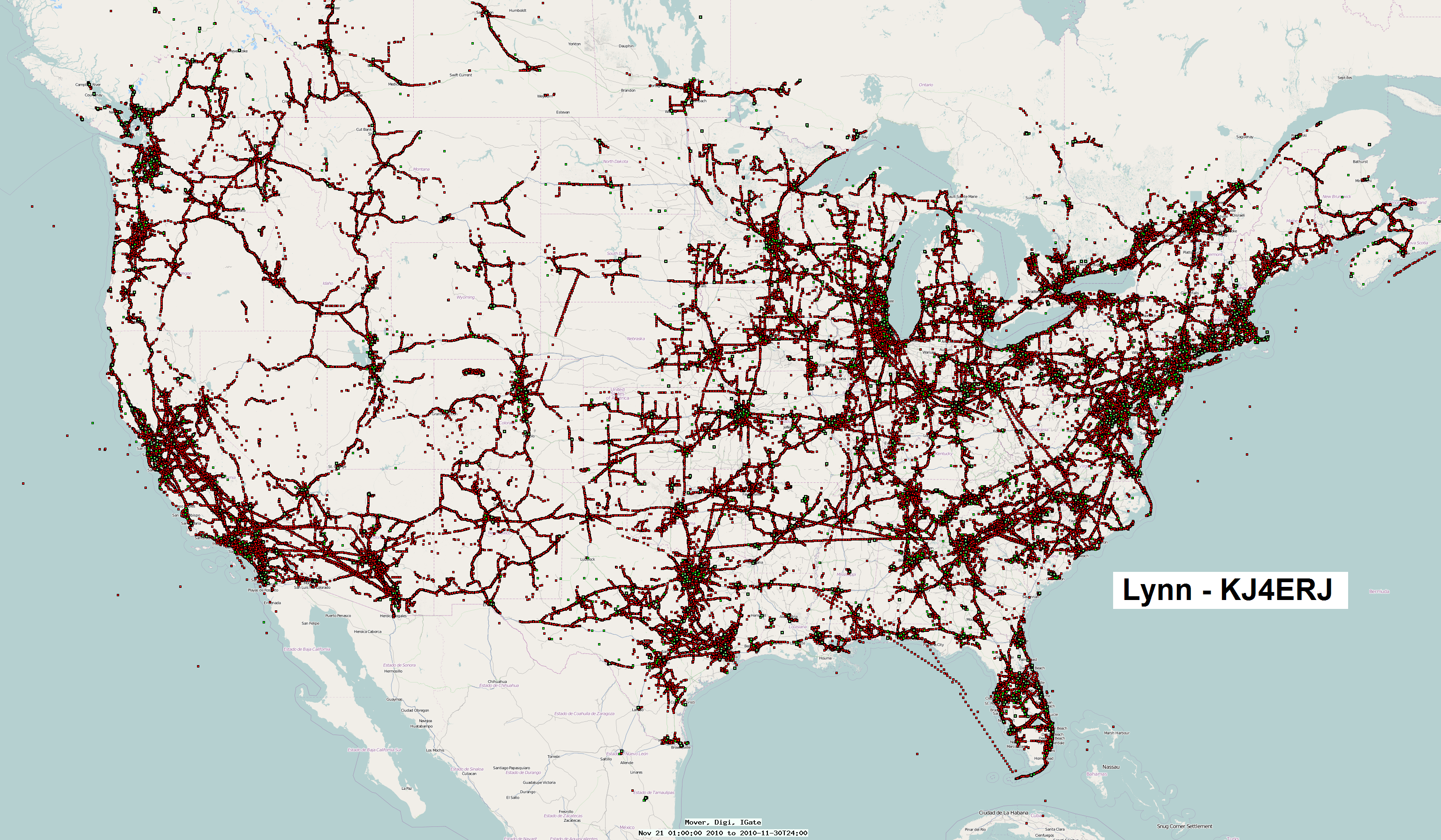 shows a one month snapshot of activity which reveals some gaps in the APRS coverage