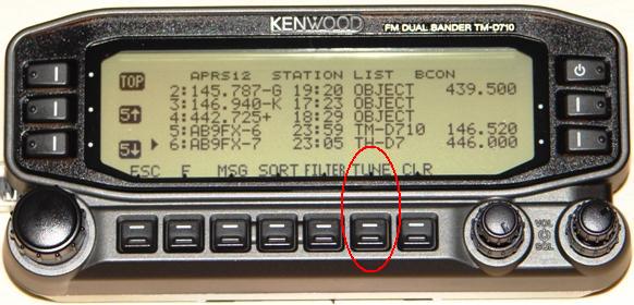 QSY Transceivers: . Also since 2007, we now have many APRS radios (D710, D72, and FTM350) that can TUNE/QSY to a frequency listed on APRS with the push of a single button as shown to the right. Not only can the radio tune to IRLP/Echolink Frequency objects, they can also tune to any other Repeater or operator that has frequency in its position packet. Please see the Local Frequency Object concept that we have been pushing for a few years now. . A few examples are shown on the radio to the right.