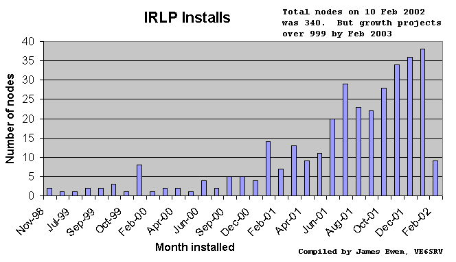 predicting growth rates of over hundreds of Voice nodes per month to exceed 999 in the IRLP system