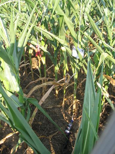 This final picture shows what the Cricket sat looked like when found. I could not even see it until I was one corn row away! Also shown is a closeup of the postcard that was attached to this Cricketsat.