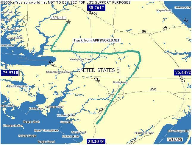 This payload went to over 100,000 feet (20 miles) and came down about 35 miles north of the launch site. The winds showed a significant change in direction at altitude as shown in the APRS track below. I leisurely headed up US-13 to State-404 to be in the vicinity of the predicted landing spot. But the payload came down much more quickly than I had imagined. I had to backtrack to the last reported position.