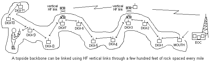 Historically, UHF ranges of a few hundred feet have not encouraged any practical use of UHF radios in caves except for maybe long vertical drops. But the ability to now link together multiple such hops should open up promise for more experimentation by actual cavers than just the radio hams.