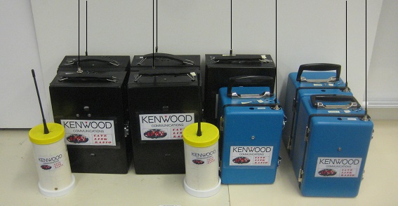 SUCCESS! - Mammoth Cave Test - 2 Mar 2013: With the support of the National Park Service, and NSS volunteers we conducted an APRS test in Mammoth Cave on 2-3 March 2013. The test was conducted by WB4APR, KG4LVA, KY4JME, KJ4AJP, and KG4CSQ under the care of Ranger Rick Toomey and NSS member Gary Gibula and others. We fielded 8 boxed TMD700/710 radios and 5 THD72 handhelds for relay plus several other D7 walkie talkies for communications. We also carried FRS radios for short range voice communications with unlicensed volunteers. After a few hours of debugging, the test was successful in extending the data link the entire 1 mile length from the elevator to the Carmichael entrance. KG4LVA manned a topside IGate at Ranger Headquarters and KY4JME manned an APRS station in the Snowball room below ground.