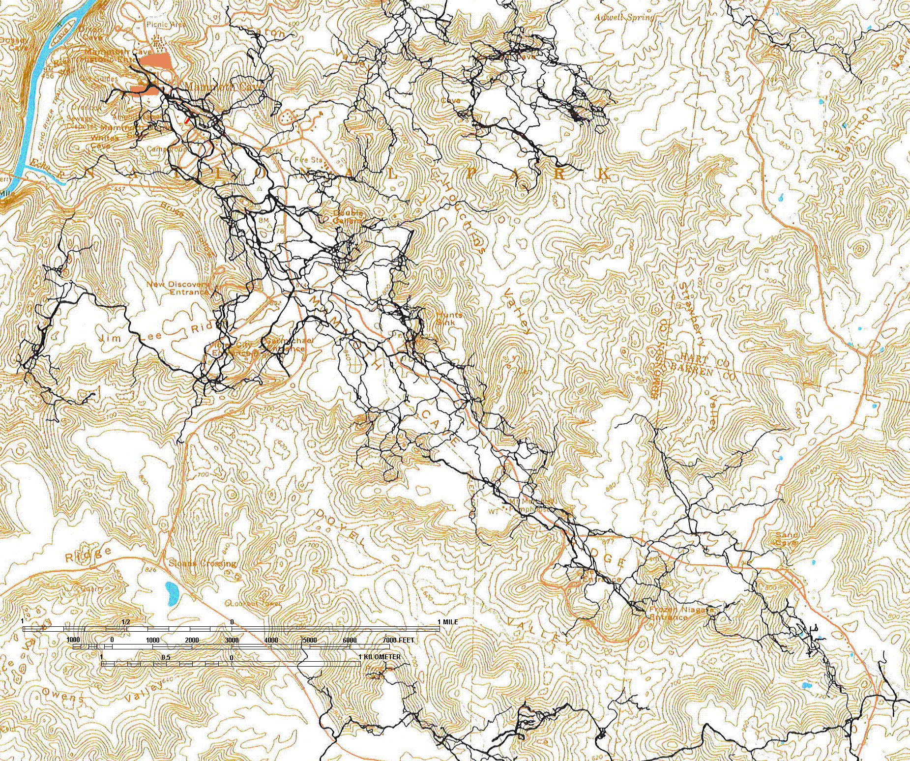below. They might be spaced about every mile or less, which allows then every point along the main cave to be within