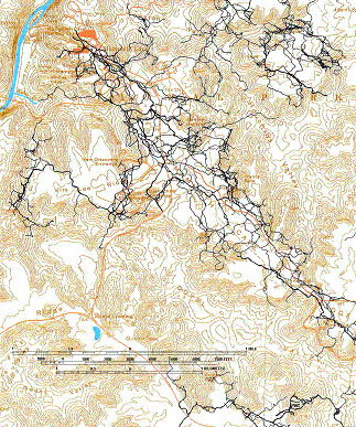 MAP RESOLUTION: Typically in cave rescue, the real advantage of APRS Cave-Link is the digital text messaging of status and progress. Exact map tracing is only of value to show approximate positions since the precision limit of APRS (in these radios) is only to the nearest 60 feet. But if higher resolution than 60 feet is needed, say to 6 feet, then someone can sketch the map to 10 times larger than actual to give resolution down to the nearest 6 feet if needed.