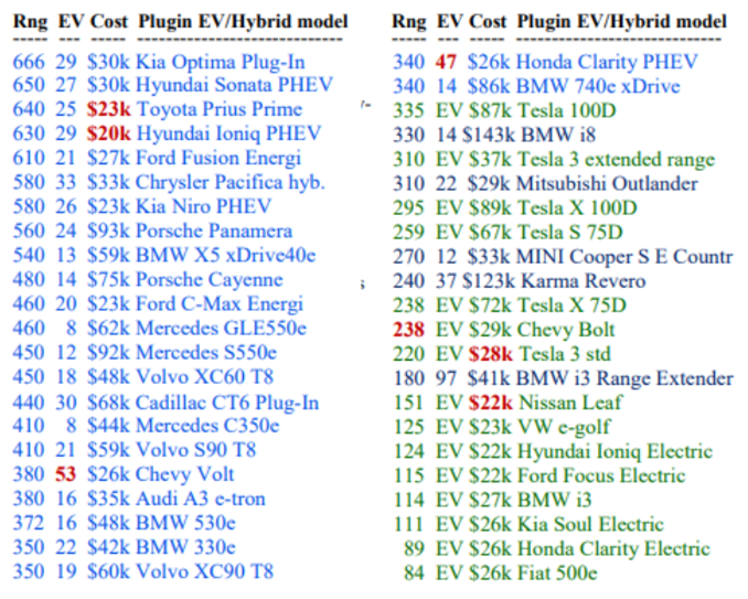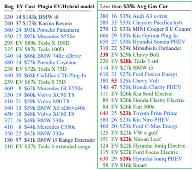 EV COST: More than 50% of all these EV's and PHEV's can cost less than the average gas car ($35k)