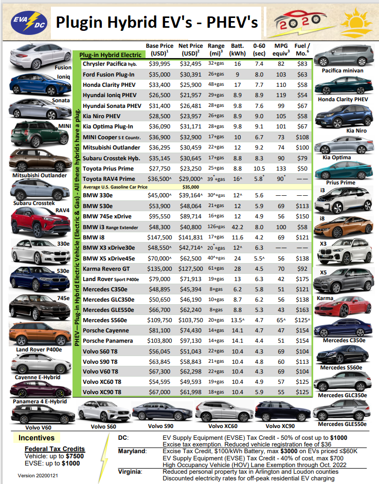 Here are the THIRTY TWO PLUGIN HYBRIDS: 37% cost less than the average gas car and all have trip ranges over 350 miles!