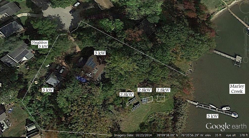 Solar on Piers, in the Critical Area, HIgh Voltage Distribution and other topics: To see the 4 years worth of wrangling with the state to get the able DIY arrays installed and the fight over installing them on a pier and in the Chesapeake Bay critical area which prohibits any such structure within 100' of the water, please see my alternative energy web page.