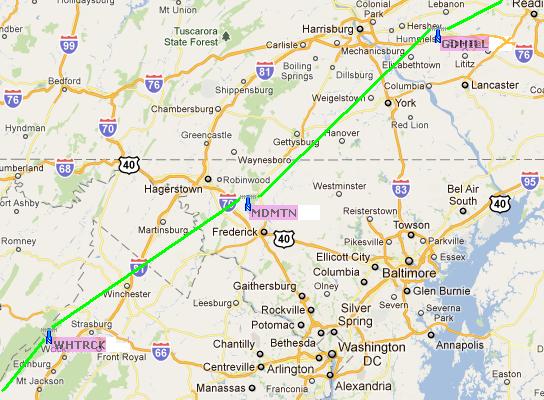 The Maryland Mountains consist of 3 ridges between Frederick and Haggerstown. The western most one is slightly higher and has the AT on it, but it cannot see over the other two into Pennsylvania. Mt Quirauk is the tall mountain with lots of Microwave equipment on it and it sits high above Fort Ritchie. But this mountain is blocked looking east to Governor Dick Hill and access is unknown.