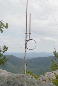 The West Virginia Mountains are not on the AT, but are across the very long and consistent I-81 valley gving a great height above average terrain. The path from Apple Orchard Mountain on the AT near Roanoak has a clear 100 mile + shot to these WV mountains. But the problem is that none of the convenient peaks have any drive-up access and are fully tree covered. There are plenty of hiking trails, however, and this station will be one of the best challenges (next to Katahdin in Maine) for the rustic outdoorsman ham operators or a troop of scouts. The image to the right shows the bottom part of the 5/8ths wave J pole and the view to the Maryland Mountains. Further down is the Google Earth view of that path.