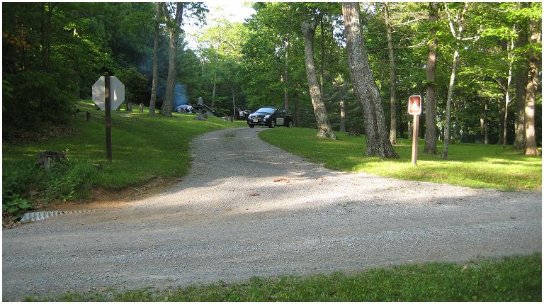 The campground (above) is a drive-up site, sitting in a small saddle between two higher areas along the ridge. It is heavily shaded by the tall trees. Operating from this site is not recommended as it is about 100 feet lower and there will be lots of tree loss.