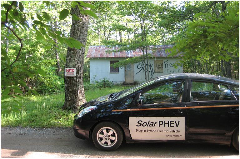 HIKE-UP PREFERRED: In my opinion it will be much easier and far more pleasant to operate with battery power from this walk-up location than to fuss with a 50 foot mast to get above the trees on the nearby road. The highest point on the road is in front of the abandoned house shown in the two views below. As you can see the trees are mature. It is true that the road is on the ridge so the ground does fall away rapidly in both link directions, but fr this first year, operation from the peak is recommended. Of course, the backup station could try just operating from the mobile in the trees at this location for possible use next year?