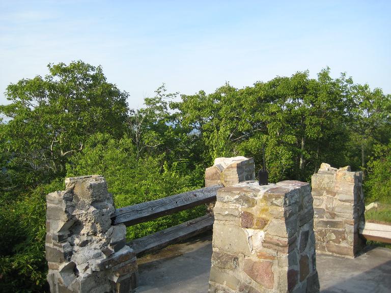 Above you can see the 50 yard treck up the steps to the overlook platform at the top. The platform has good views in all directions. I'm not sure the best method to mount a short mast to the rock posts, but a 10 foot mast should be used to get the antenna field above the heads of participants so their movements do not impact the links.