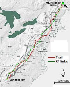 See the Golden Packet plan. . This is one of the 15 hill-top sites from Georgia to Maine we hope to visit this summer on 24 July 2011 for 4 hours to attempt to relay a text message using hand-held radios the 2000 mile length of the Appalachain trail. This is to be a no impact Leave-No-Trace type of event of a few individuals at each site. . Other hikers equipped with APRS ham radios are welcome to participate with advance notice.