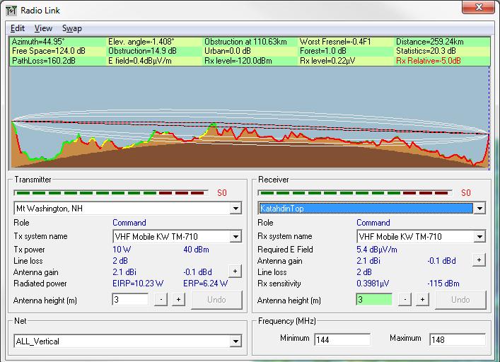 The challenge is the mountains inbetween KQ1L-6 and the lower more accessible sites we have selected on Katahdin as shown in the KX4O analysis below. But with knife-edge refraction and maybe a small beam, the signals should be workable. From the top, I bet a direct shot to Mount Washington might work?