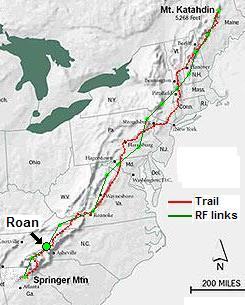 See the Golden Packet plan. . This is one of the 15 hill-top sites from Georgia to Maine we man the 3rd Sunday in July for 4 hours anually to attempt to relay a text message using hand-held radios the 2000 mile length of the Appalachain trail. This is to be a no impact Leave-No-Trace type of event of a few individuals at each site. . Other hikers equipped with APRS ham radios are welcome to participate during the free hour after 3 PM..