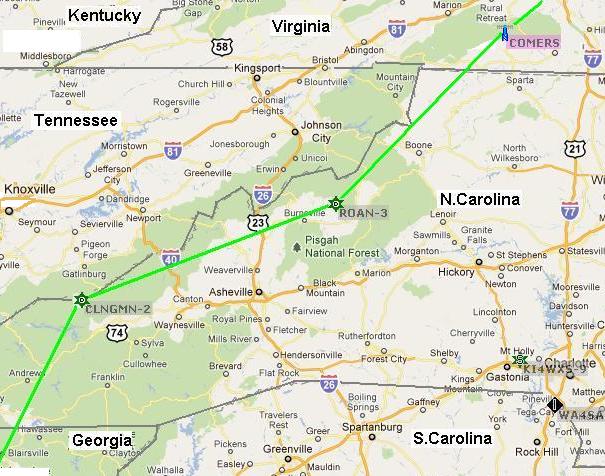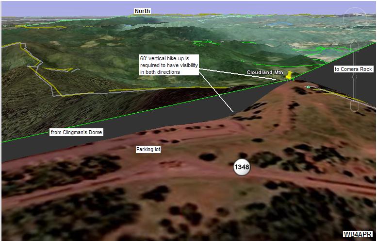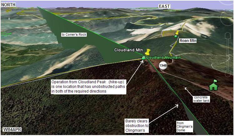 The above view shows the RF path from Clingman's dome in the Great Smokies National Park to Roan Mountain. THe RF plots by KX4O show pretty good RF links.