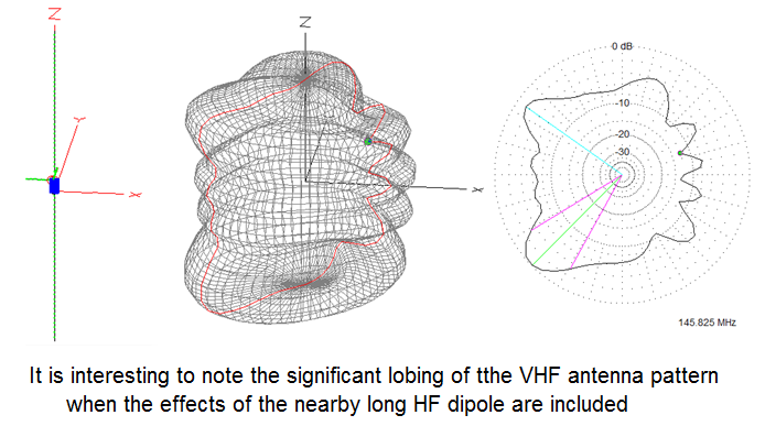 HF SATCOM User Antenna: It is important to note that an HF satellite operates with a much improved link budget (20 dB) because of the lower frqeuency than UHF (though a lot of that gain is lost in the presence of the higher noise floor on HF freuqncies). But with that link advantage and with the larger size of the antennas (dipoles or verticals) the typical user station and spacecraft use omnidirectional antennas. This means there is no requirment for tracking antennas. If the satelilte is in view, it should provide relay service. The most practical HF user antenna is a vertical OMNI (no moving parts to wear out or require rotators) and it has good gain from the horizon upward in all directions.