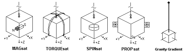 STACKsats: The images below show two typical LABsat stack configurations. These show the momentum wheel and magnetorquing experiments for demonstrating attitude control. The Motor and the orthogonal X and Y torquing coils demonstrate actual attitude control using the Earths magnetic field. When hung from a string, students are able to change the attitude of the labsat, and, with the right pulsing of the coils, spin up or de-spin the spacecraft. . Other models can demonstrate propulsion with either Match-heads, Estes rockets, or Fans.