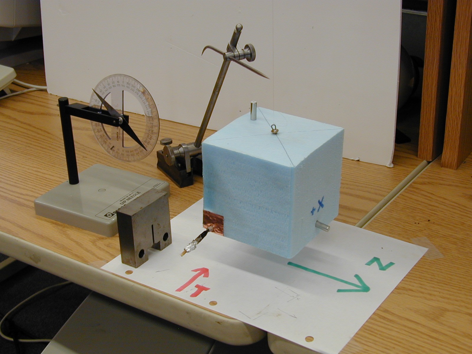 shows the orientation of the Earths Magnetic field in the lab.