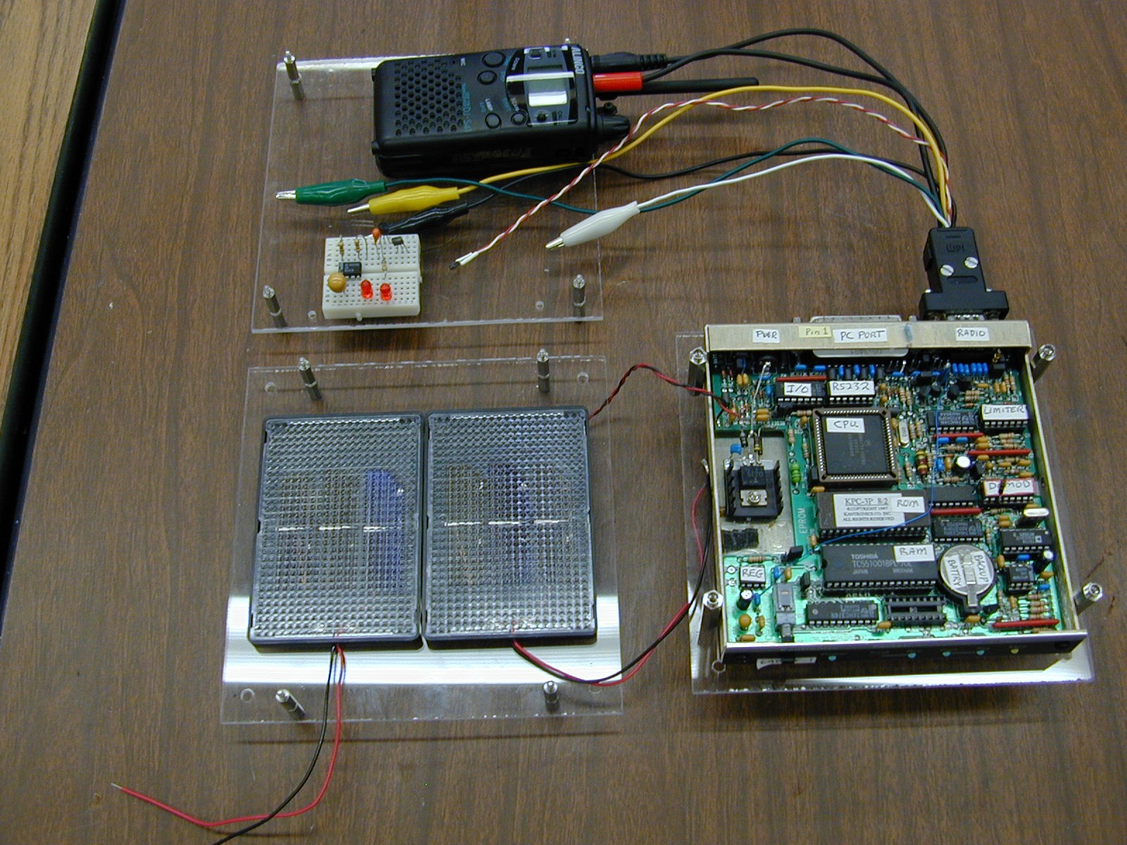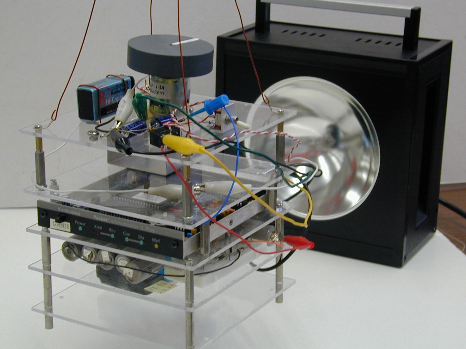 and AX.25 packet radio modem and small radio. The one shown below uses the Kenwood