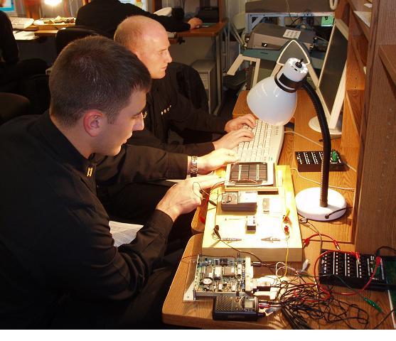 LABSAT SYSTEM: The LABsat concept was developed at USNA beginning about 1998 to use innexpensive off-the shelf components for under about $600 each ($900 with discrete TX & RX), yet include RF hardware similar to what we used in our 5 actual spacecraft (PCSAT, PCSAT2, ANDE, RAFT, and MARScom) so that they could actually close the link from orbit in the Amateur Satellite Service. The labsats can not only serve as the final integration of all the modules of the seniors lab course, but they can also serve as rapid prototyping devices for testing modules and components for auxilliary payloads and applications. . With their full space-link budget comms system, they can be carried anywhere on the academy or out to 500 miles LOS and still be commanded for demos. Our next satellite project is Psat.