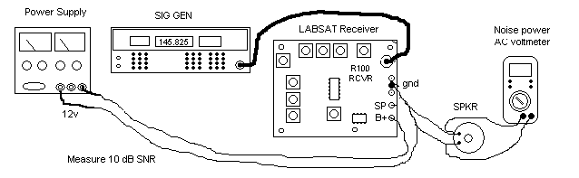 1 Mile Link Test: The final test of any flight units is the 1 mile full range test as shown at right. The satellite and grouind station are separated by about a mile and then 30 dB of attenuators are placed in the ground station coax line and in the satellite test item. This total attenuation summs to 60 dB which is the same thing as a range difference of 1000-to-1. If the communications works with this attenuation over 1 mile, then it proves it will work over 1000 miles without the attenuation.